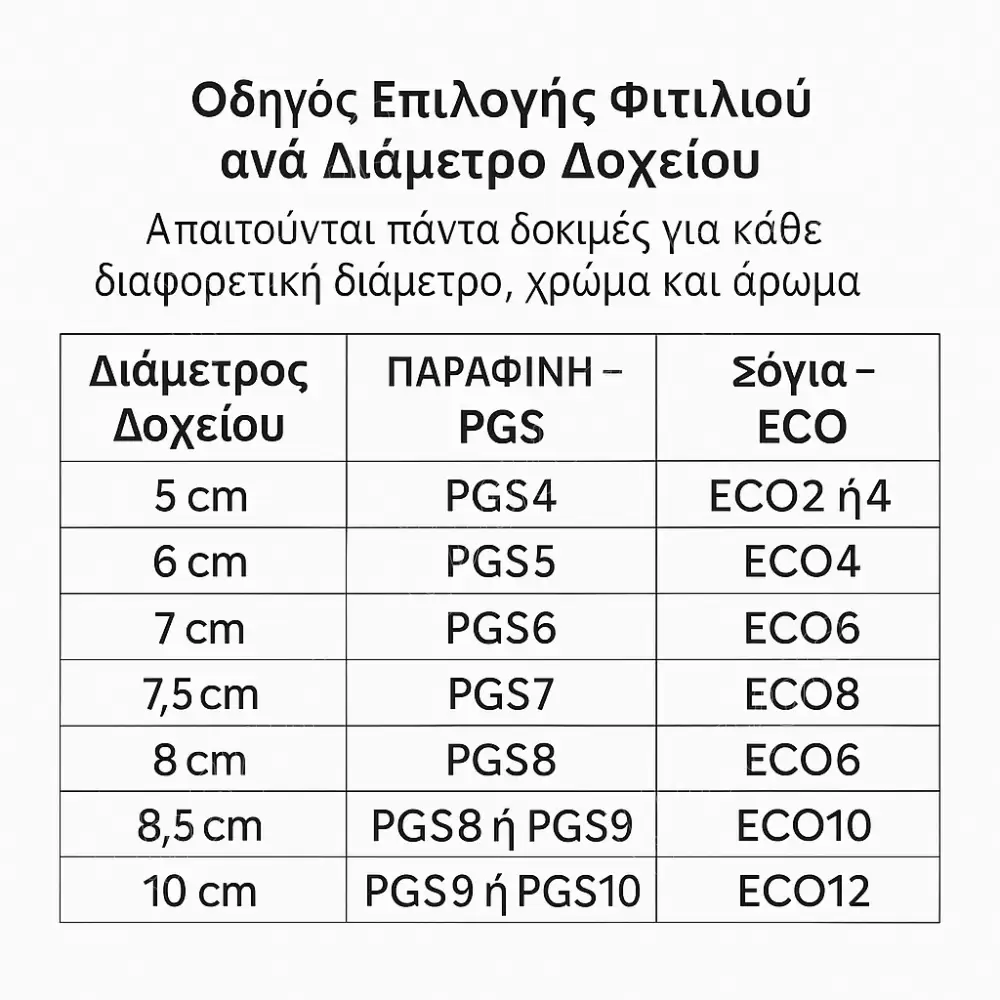 • Κατάλληλα για κεριά παραφίνης, σόγιας και φυτικά μίγματα, εξασφαλίζοντας ομοιόμορφη φλόγα.