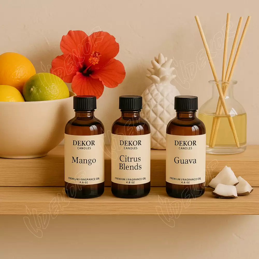 • Φρουτώδη αρωματικά έλαια 100ml με ζωντανές, δροσερές και τροπικές νότες για κεριά, σαπούνια και δημιουργίες υψηλής αισθητικής.