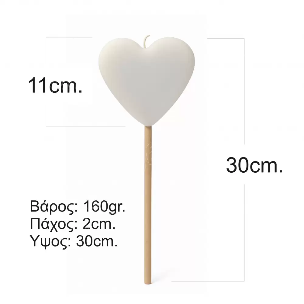 • Λευκή λαμπάδα τύπου ξυλάκι γλυφιτζούρι με κερί καρδιά